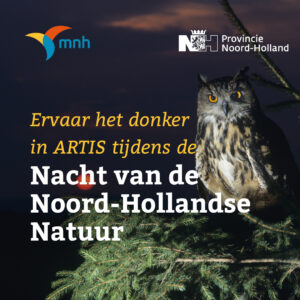 Leer het donker kennen in ARTIS op donderdag 27 oktober! Provincie Noord-Holland wil dit jaar extra aandacht besteden aan de Nacht van de Nacht, door middel van de Nacht van de Noord-Hollandse Natuur. Natuur en Milieufederatie Noord-Holland organiseert met steun van de Provincie een bijzonder nachtevent in ARTIS. Het wordt een gevarieerd programma met onder andere Singer-Songwriter Tim Knol, dichter en theatermaker Marjolijn van Heemstra en onderzoekscoördinator bij BioClock Consortium Joke Meijer. En nog unieker: je krijgt een korte tour door ARTIS in het donker! Zo ervaar je donkerte en natuur van dichtbij. Zet de datum alvast in je agenda! Meer informatie
