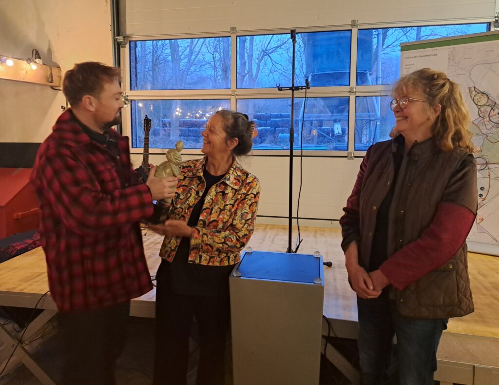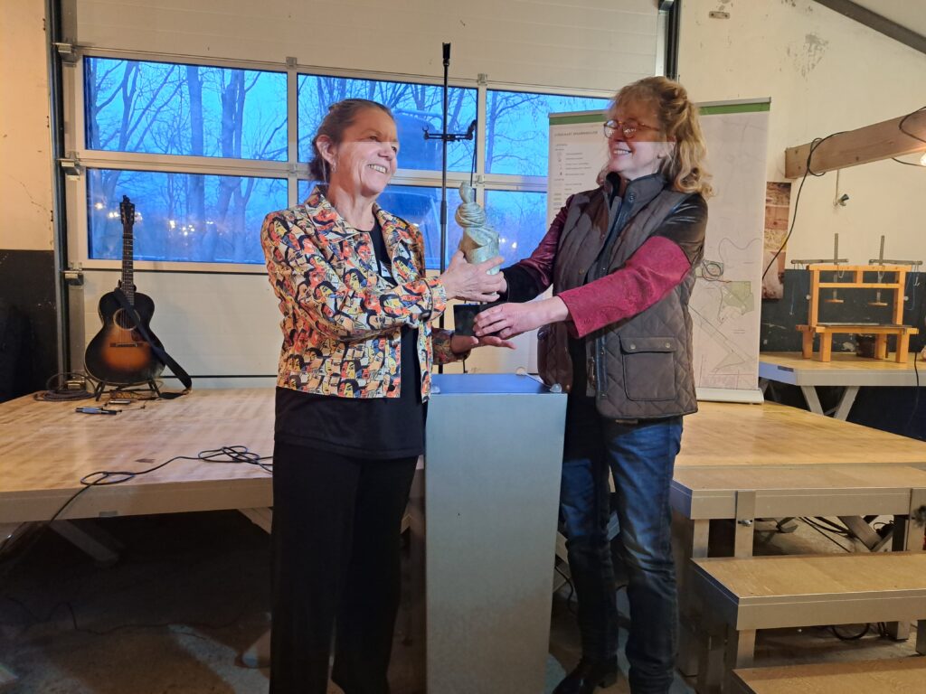 De Knoop is dit jaar uitgereikt aan de Agrarische Natuurvereniging De Lieuw. De vereniging ontwikkelt het agrarisch natuur- en landschapsbeheer op Texel. Zij hebben deze aanmoedigingsprijs gekregen voor hun inzet in het gebiedsproces rondom de Hoge Berg. Voorzitter Marian Merkelbach nam de prijs op deze middag in ontvangst. “We hebben nog ontzettend veel te doen met zijn allen” reageerde ze. “Eigenlijk verdient iedereen die zich inzet voor de gebiedsprocessen deze aanmoedigingsprijs. Het motiveert mij zeker om in 2023 weer hard aan de slag te gaan en ik hoop andere betrokkenen ook.”