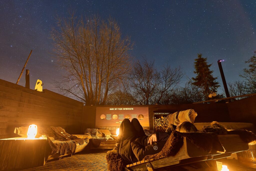 Op het erf van Puur Terschelling is een speciaal zit- en ligbankgebied ingericht waar bezoekers in alle rust kunnen genieten van de sterrenhemel. Hier is informatie te vinden over de nachtelijke flora en fauna, de sterren en planeten, en waarom donkerte zo essentieel is voor het ecosysteem van de Wadden en voor onze eigen gezondheid.