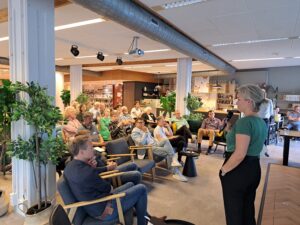 Vanuit het publiek werden zorgen geuit over de ruimtelijke vraagstukken waar we momenteel voor staan. Deze zijn groot en behoeven meer aandacht. Er ontstond een geanimeerde discussie, die bij de borrel werd voortgezet. Verder kwam naar voren dat er zorgen zijn over de participatie en inspraakmogelijkheden bij dit proces. Waarom is er niet een soort gelijk proces als bij de Regionale Energie Strategie (RES)? De provincie reageert hierop dat bij de eerste herzieningsfase van pMiek (provinciaal Meerjarenprogramma Infrastructuur Energie en Klimaat) in 2025 participatie wel opgepakt gaat worden en dat de energievisie gebaseerd is op de zoekgebieden RES en bestaand beleid.