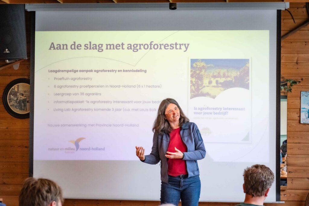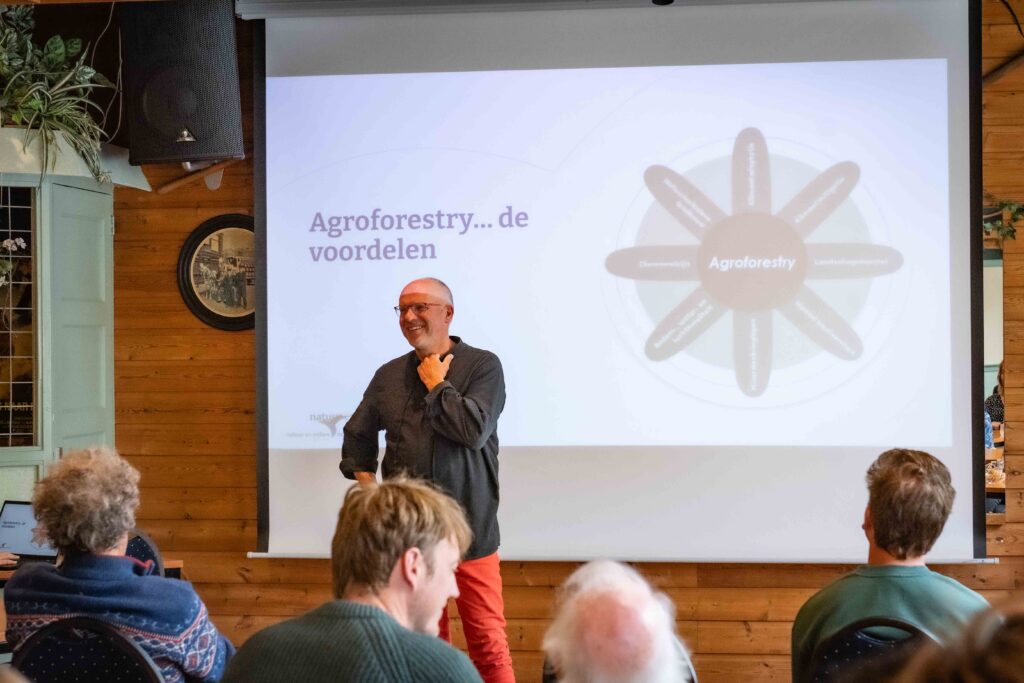 Wil Sturkenboom van Fruittuin West deelde zijn ervaringen als pionier op het gebied van agroforestry. Daarna kregen de deelnemers een praktijkvoorbeeld te zien bij De Korte Weg van Anna Kuiper (netwerkcoördinator), waar haar aanpak van het integreren van bomen en gewassen in een duurzaam landbouwsysteem centraal stond.