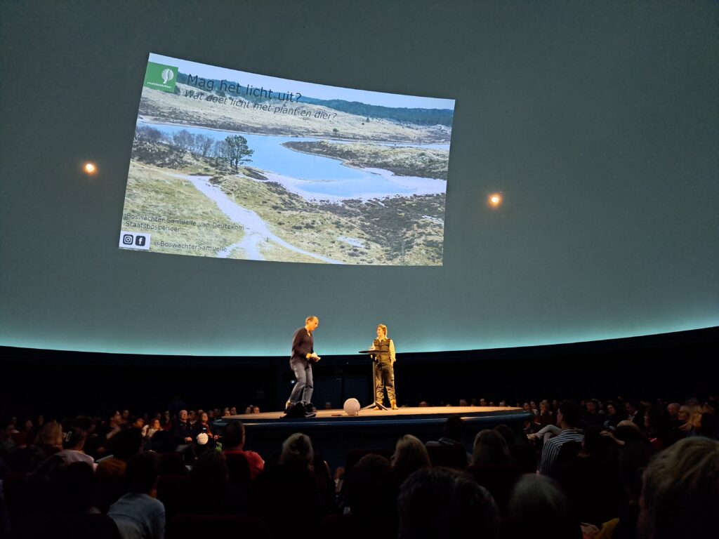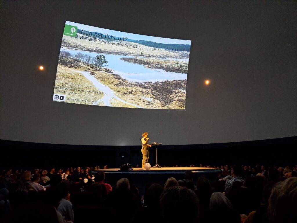 Samuelle van Deutekom, boswachter bij Staatsbosbeheer, richtte haar presentatie op de invloed van licht op flora en fauna, waarbij ze de relatie tussen de nachtelijke duisternis en het welzijn van de natuur blootlegde.