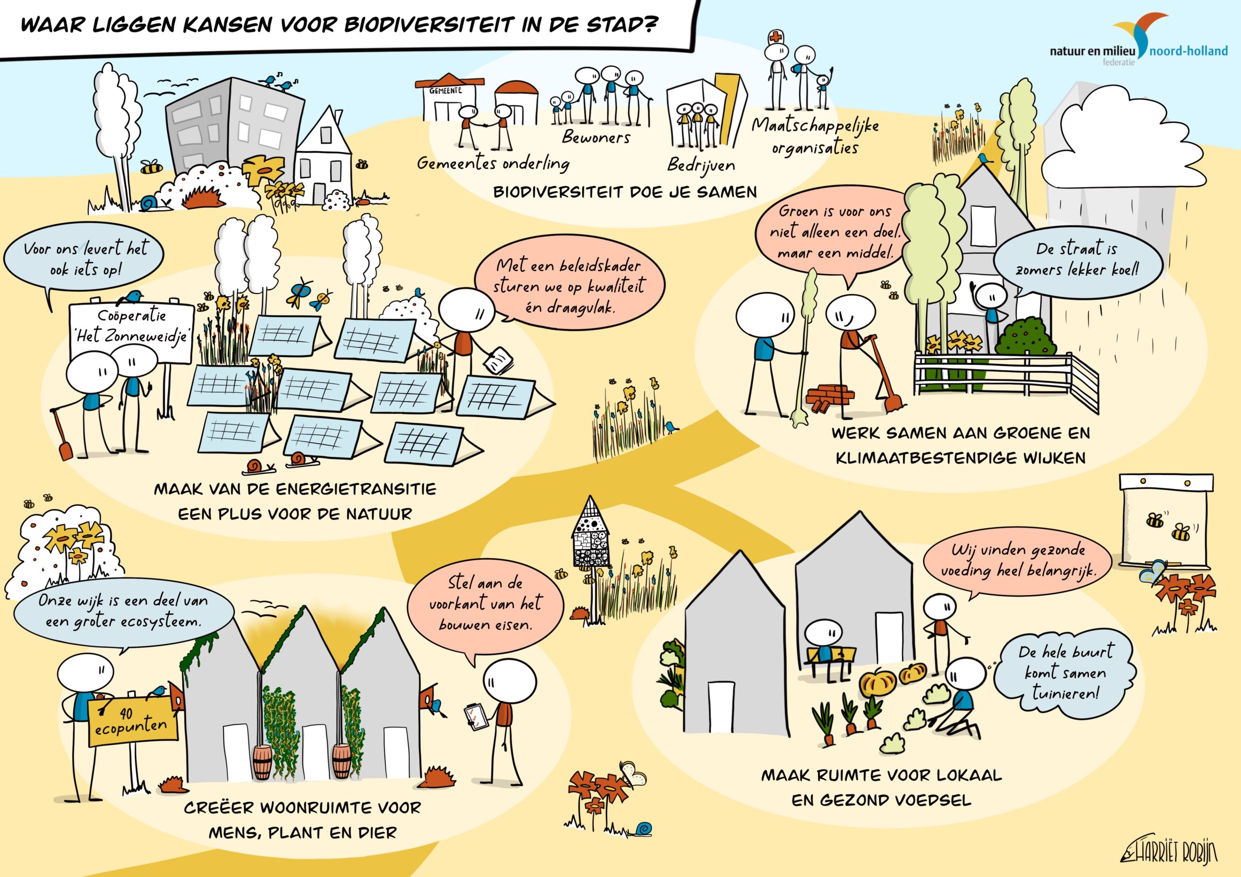 In de Inspiratiegids voor gemeenten worden vier thema’s rondom biodiversiteit in de bebouwde kom uitgelicht: natuurinclusief bouwen, klimaatadaptatie, de natuurinclusieve energietransitie, stadslandbouw en groen & gezondheid. We hebben tips, ervaringen en goede voorbeelden verzameld uit de praktijk van Noord-Hollandse gemeenten. De inspiratiegids bestaat uit kennisdossiers en interviews met beleidsmakers, initiatiefnemers en andere experts.