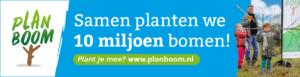 Tot 2024 planten we met het project Plan Boom 10 miljoen bomen in tuinen, bermen, plantsoenen, parken, op bedrijventerreinen en in het buitengebied in heel Nederland. or en door burgers. Hiermee verkleinen we onze CO2-uitstoot en wordt onze leefomgeving mooier, groener, frisser en gezonder. Iedereen kan zelf bijdragen en kan in de eigen woonomgeving daarvan de vruchten plukken.